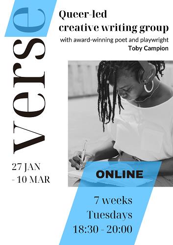 verse is a queer-led creative writing group from award-winning poet and playwright Toby Campion. Each weekly workshop is designed to improve your writing craft, nourish your creativity, spark inspiration and build your writing community. Read more...